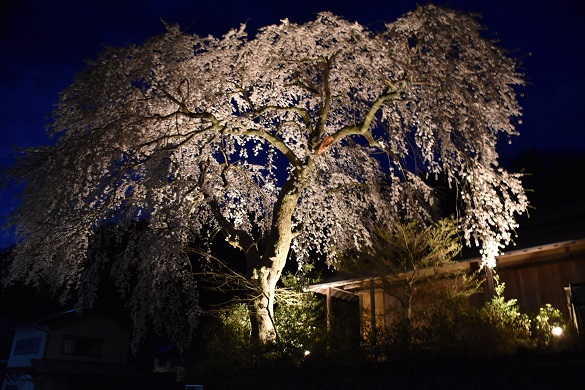 ふるさとおおち伝承館の前川桜 樹齢120年の枝垂れ桜 【第18回しまね景観賞まち・みどり部門奨励賞受賞】道に大きくしだれた樹齢約120年の枝垂桜は、桜のシャワーを降らせます。江戸時代後期の面影を残す旧前川家住宅(現伝承館)の縁側でゆっくりと桜を鑑賞しませんか?敷地内には希少な山野草「オキナグザ」も同時期に咲いています。踏まないようにご注意をお願いします。ライトアップ実施:19時頃~21時30分頃まで 桜の開花状況を見ながら点灯開始~約1週間。 所在地島根県邑智郡美郷町九日市 電話・FAX0855-75-1217 営業時間 アクセスマップ
